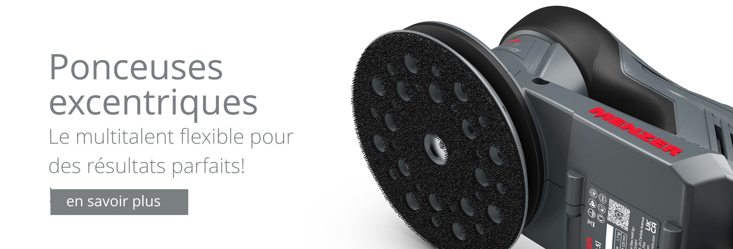Les ponceuses excentriques de MENZER sont synonymes de solidité, robustesse, ergonomie parfaite et de maintenance ultra-réduite. Conçues pour les travaux de ponçage et de polissage fin des utilisateurs exigeants, les ponceuses excentriques MENZER se distinguent par leur qualité de traitement très élevée et une technologie de moteur EC innovante.